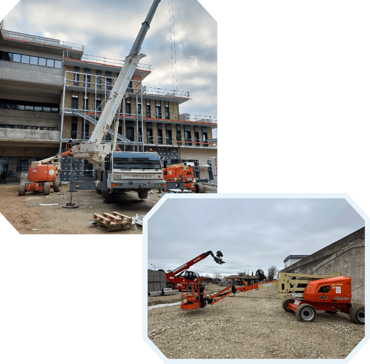 Une grue de 35 tonnes, quatre nacelles articulées, et un chariot télescopique rotatif RTH 6.25 capable de soulever